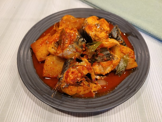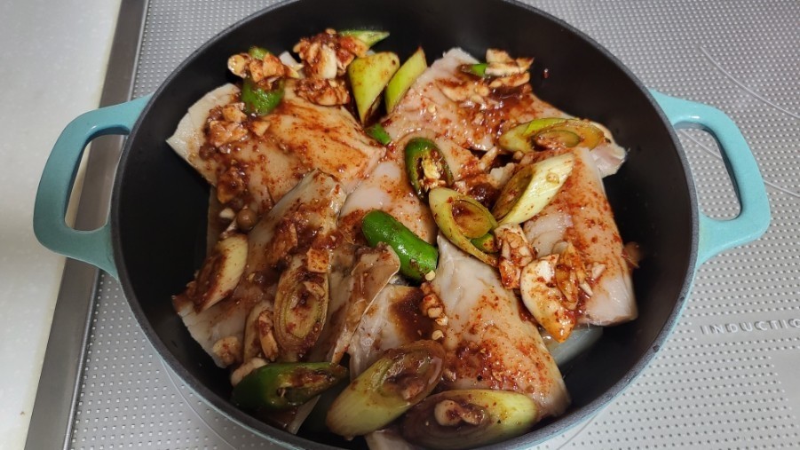 - 물의 양은 고등어가 절반쯤 잠기는 정도로 넣어주시면 돼요.
