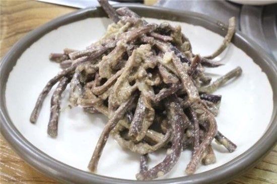 - 들깨를 갈아 물에 풀어 채에 걸러 팬에 넣고 함께 볶습니다.