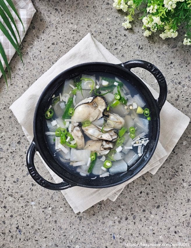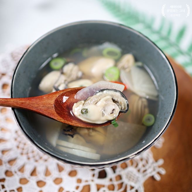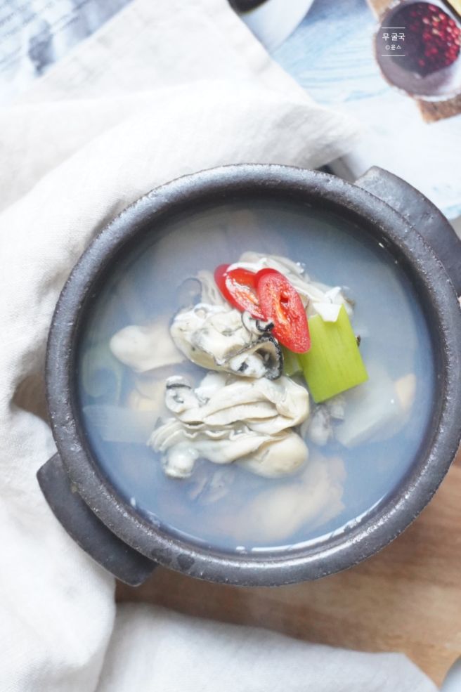 - 굴은 너무 오래 끓이면 질겨지므로 주의하세요