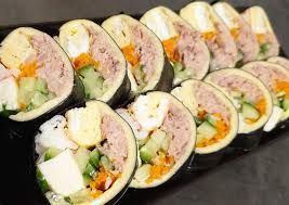 - 준비한 재료를 골고루 넣고, 김밥을 단단히 말아줍니다.