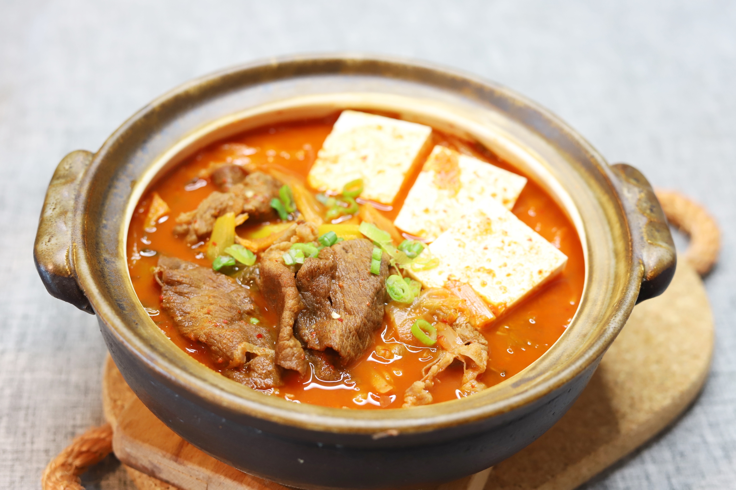 - 두부와 대파를 넣고 5분 더 끓이면 완성!