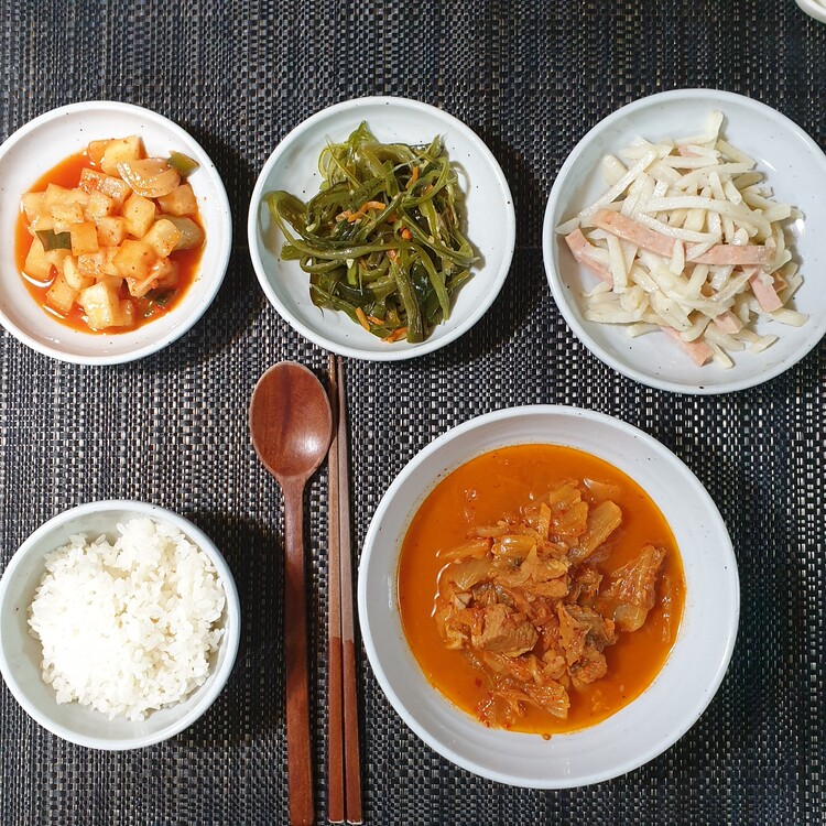 칼칼하고 진한 국물, 푹 익은 김치의 감칠맛이 입맛을 확 살려줍니다.