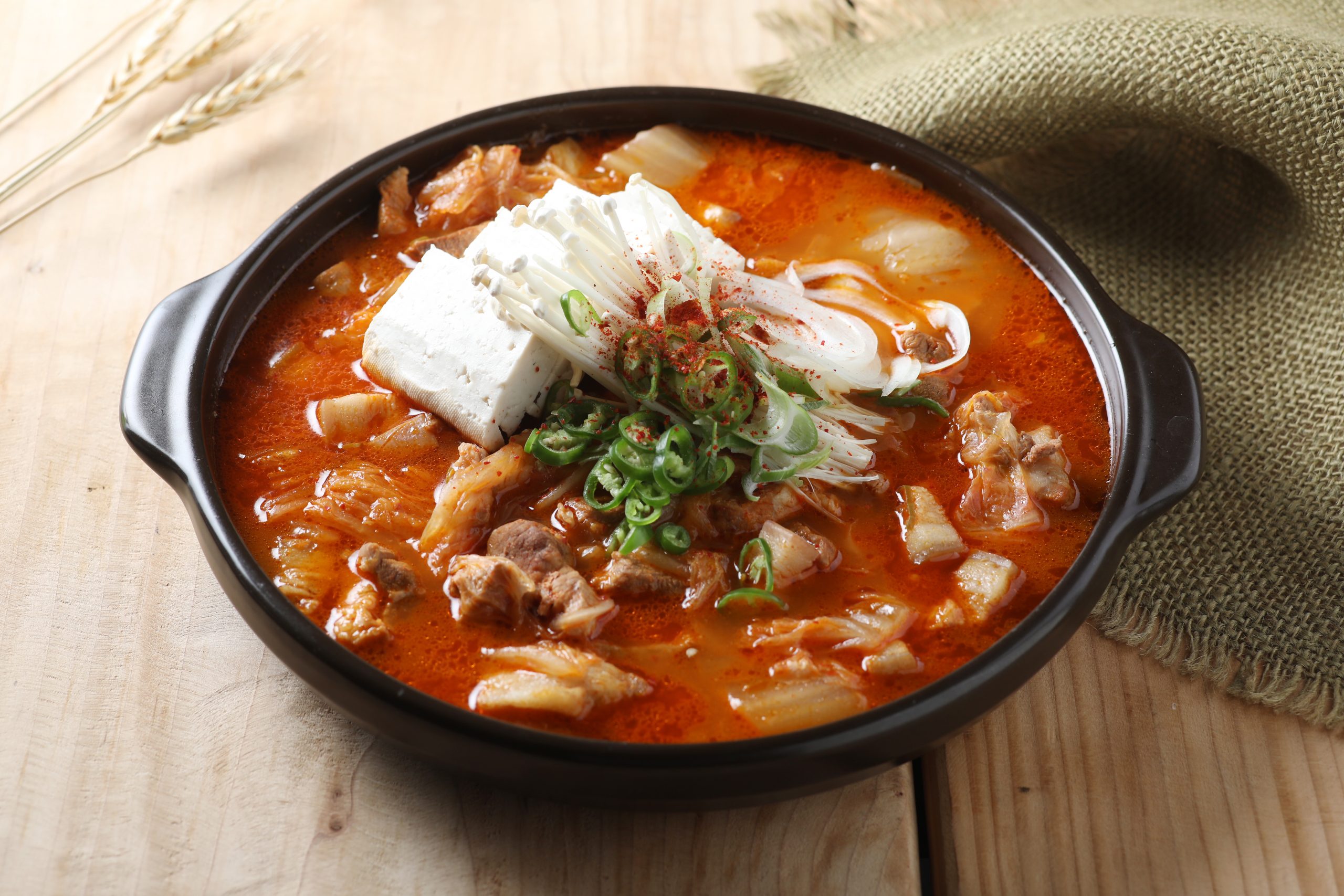 - 강불에서 빠르게 끓여야 고기 육즙과 김치 맛이 고르게 배어납니다.