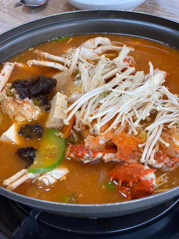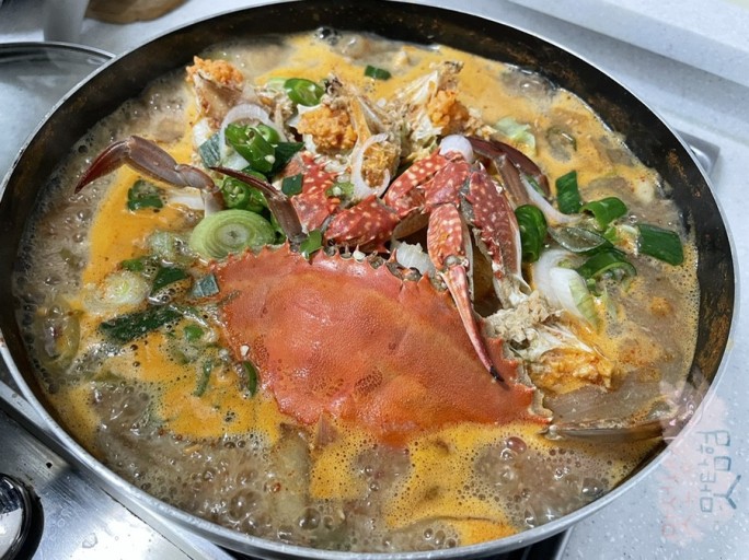 시원하고 개운한 국물 맛을 즐길 수 있어요.살이 오동통한 꽃게에 얼큰한 국물 한 그릇이면