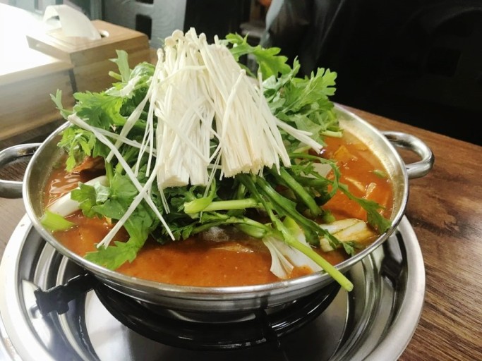 - 마지막에 미나리와 쑥갓을 올려 향을 더하고, 간을 보고 싱거우면 참치 액젓이나 국간장으로 맞춥니다