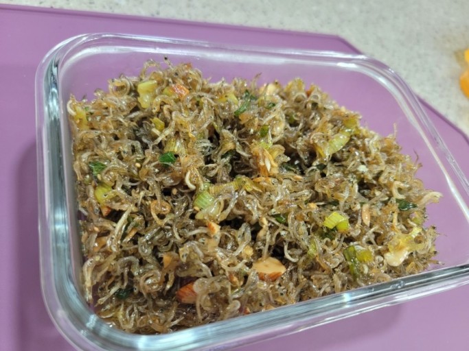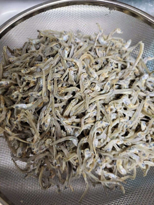 - 멸치는 비린내 제거를 위해 마른 팬에 바삭하게 볶아내기
