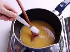 - 끓기 시작하면 찹쌀가루를 조금씩 넣으면서 저어줍니다. 이때 덩어리 지지 않도록 잘 섞어줍니다.
