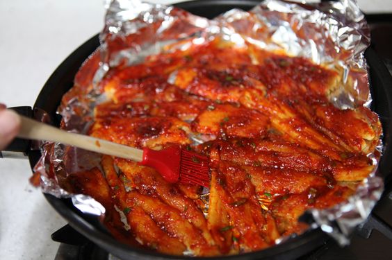 - 한 번 구운 후 양념장을 바르고 다시 구워줍니다.