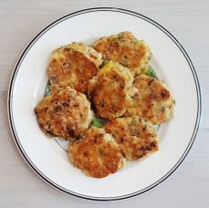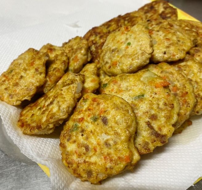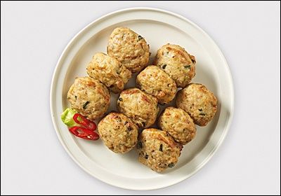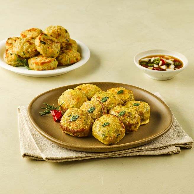 - 노릇노릇하게 익은 동그랑땡을 접시에 담아냅니다.