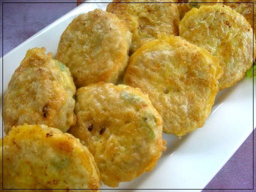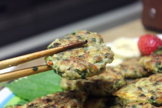 - 팬에 기름을 넉넉히 두르고 중불에서 달군 후, 반죽을 숟가락으로 떠내어 모양을 잡습니다.
