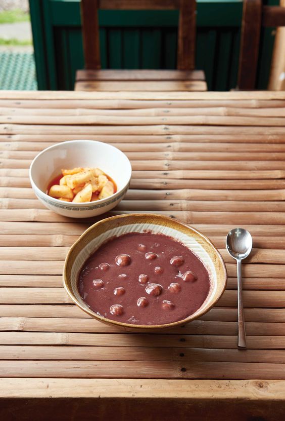 - 완성된 팥죽을 그릇에 담아 따뜻하게 서빙합니다.
