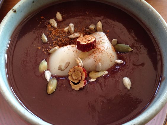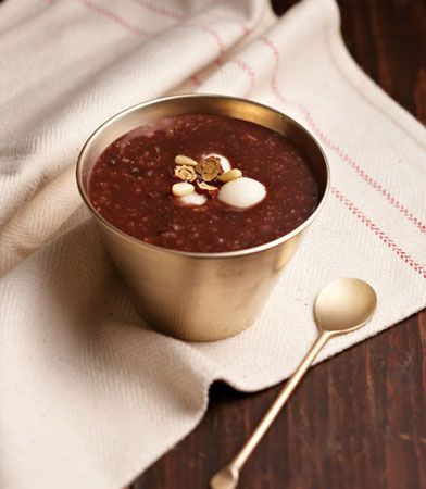 - 완성된 팥죽을 그릇에 담아 서빙합니다.