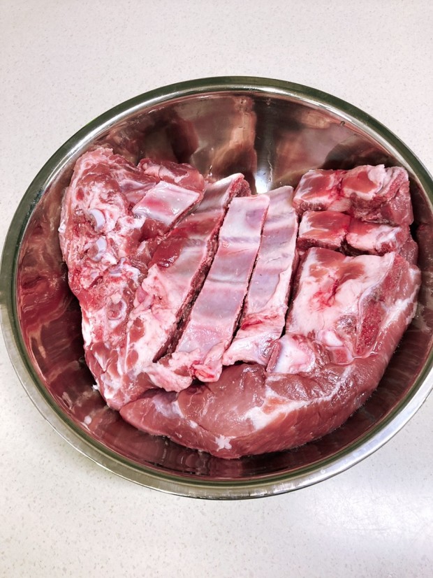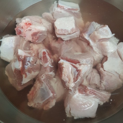 - 돼지갈비를 물에 30분에서 1시간 정도 담가 핏물을 제거합니다.