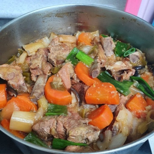 - 준비된 갈비와 양념, 채소를 함께 조리합니다.