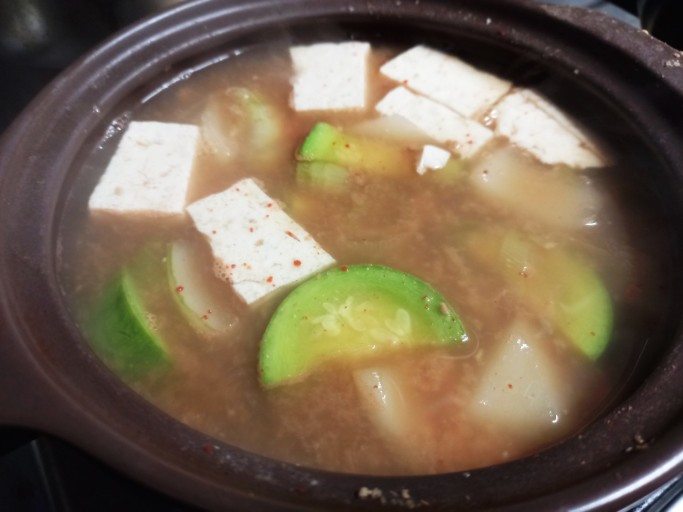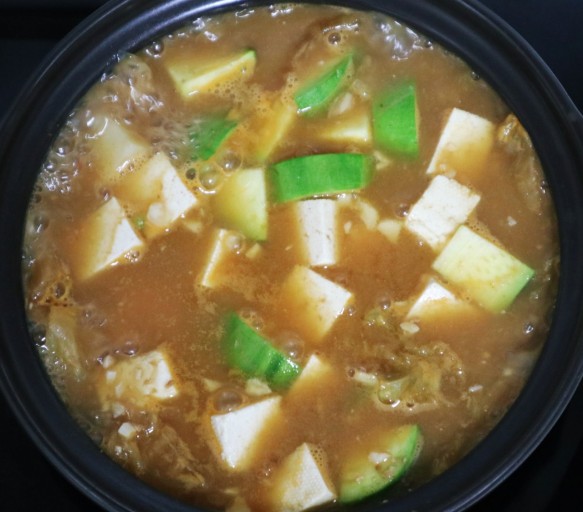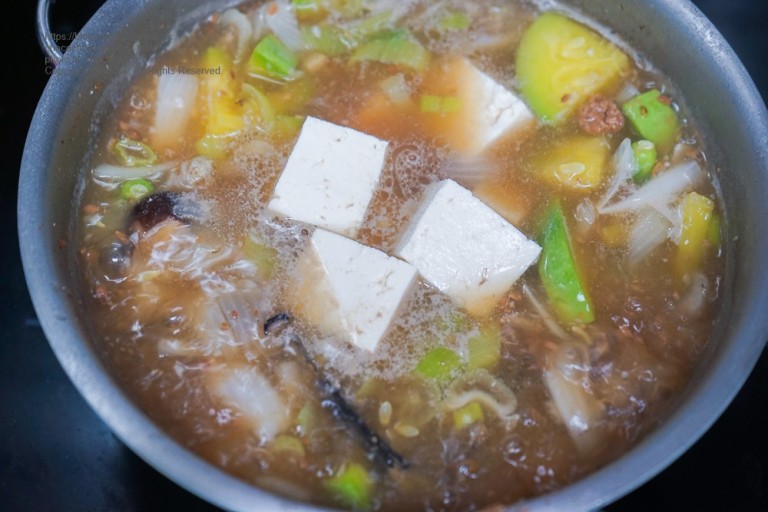 - 불은 중간불로 줄여 주며, 두부 1모를 넣어 준후 마무리해 준다.