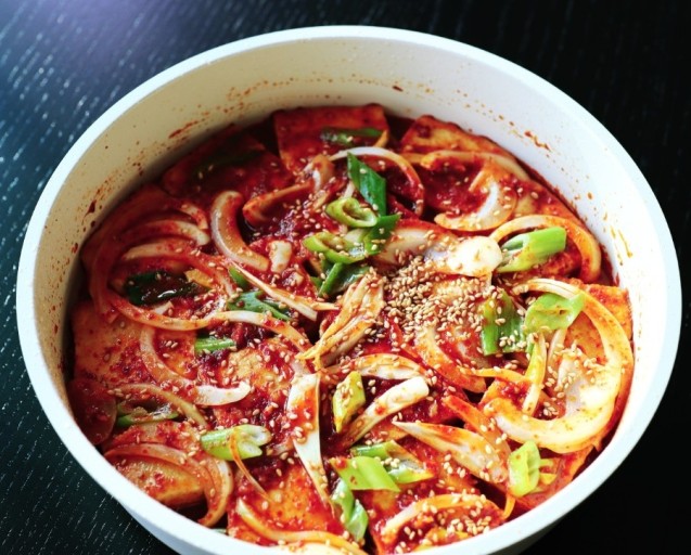 - 양념장에는 다진마늘, 고추장, 고춧가루, 간장, 올리고당과 참기름을 넣고, 잘 섞어 준다.