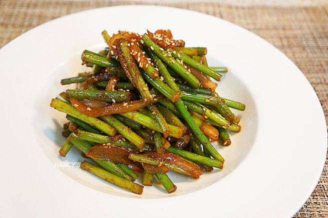 - 마늘쫑을 깨끗이 씻어 물기를 제거합니다.