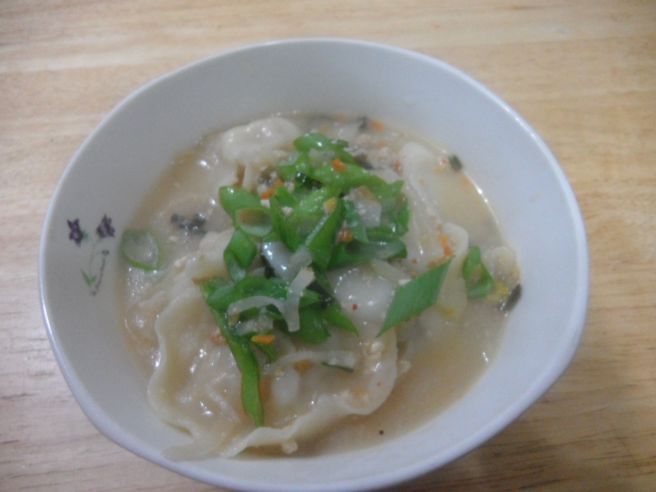 - 여기에서 좀 더 진하게 먹고 싶다면 국간장을 왜간장으로 바꾸고 그리고 다진 마늘을 좀 넣으면 칼칼하니 좋아요. 고추장을 1작은술 넣어도 맛있고요. 물만두를 넣는 게 가장 맛있긴 하지만 요런 찐만두나 군만두를 넣어도 맛있어요.