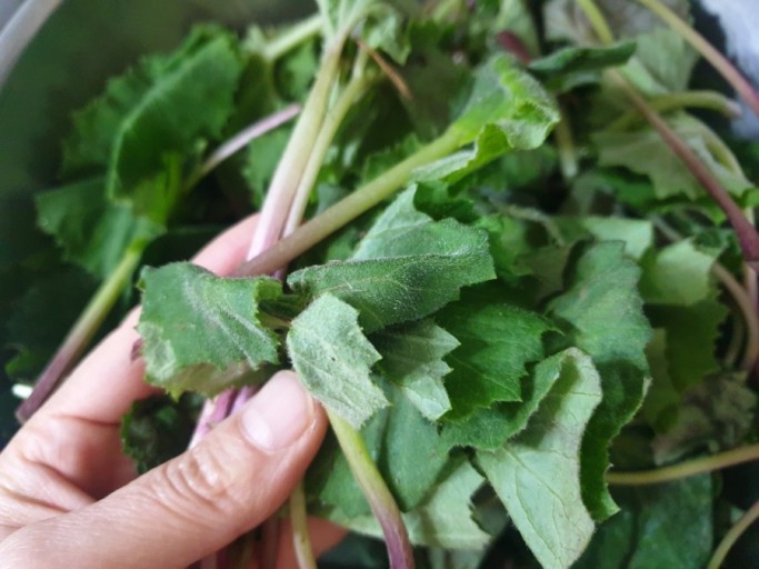 - 억센 부분은 제거하여 부드러운 줄기와 잎만 준비합니다.