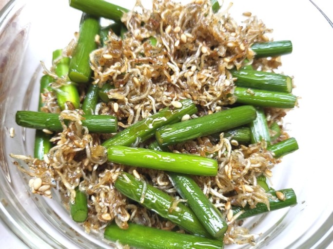 - 팬에 식용유를 두르고 잔멸치를 중간 불에 3분 정도 볶아 내어 준다.