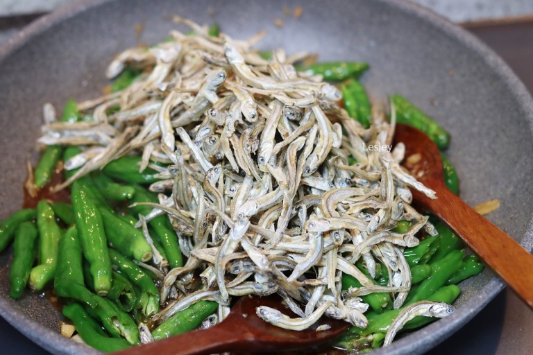 - 꽈리고추를 볶은 후 멸치를 넣어 함께 볶아내면 되는데 멸치는 앞에서 충분히 볶은 상태이기 때문에 간장이 베일 정도로만 볶아내면 돼요.