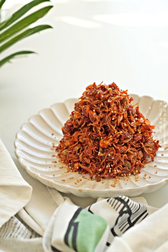 - 고춧가루를 넣은 버전을 만들고 싶다면 고운 고춧가루를 적당히 넣어 멸치와 섞이게 하기 위해 물을 약간 넣어준다.
