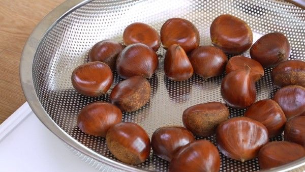 밤의 아랫부분에 칼집을 내어줍니다. 이렇게 하면 삶는 동안 밤이 터지는 것을 방지할 수 있습니다.