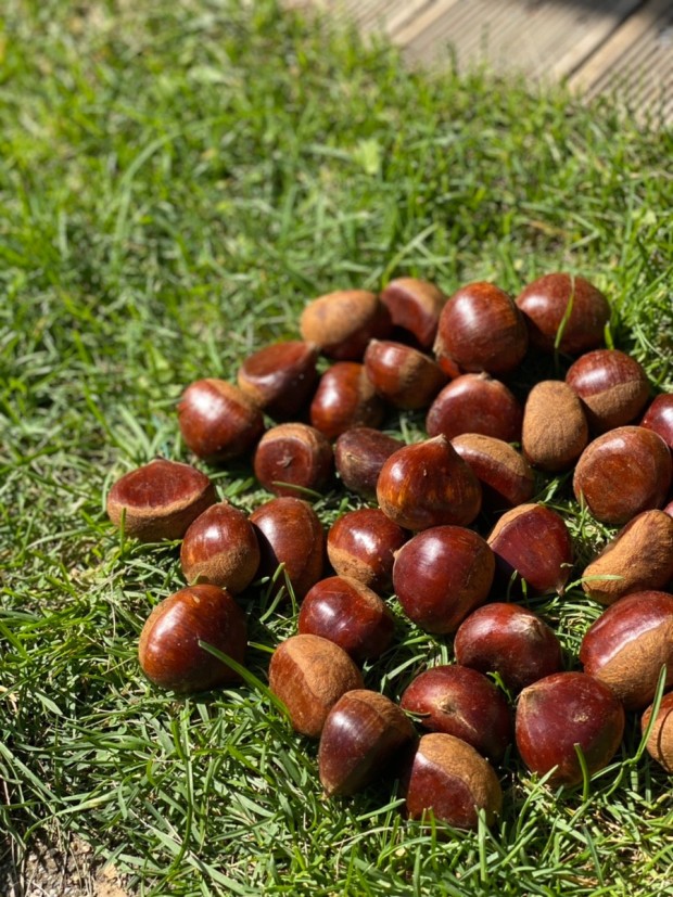 식힌 밤의 껍질을 벗겨내고, 맛있게 즐깁니다.