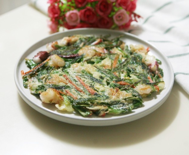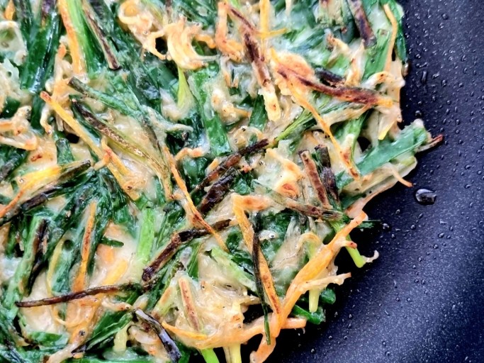 - 너무 두껍지 않게 부쳐야 뒤집기 쉽고 바삭하다.