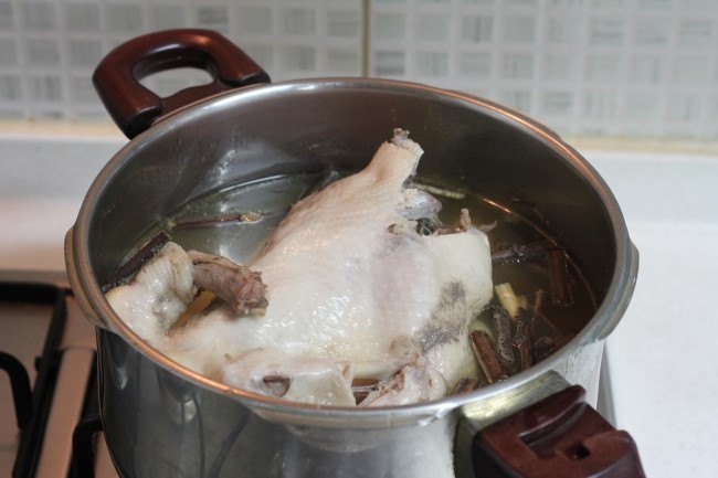 약 340분~45분간 삶는다. 그렇지만 냄비의 크기와 화력에 따라 조리시간은 조절하도록 한다.