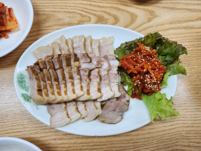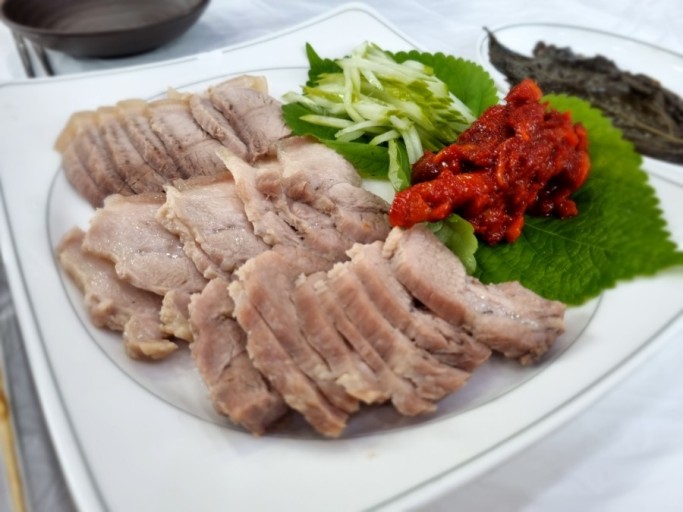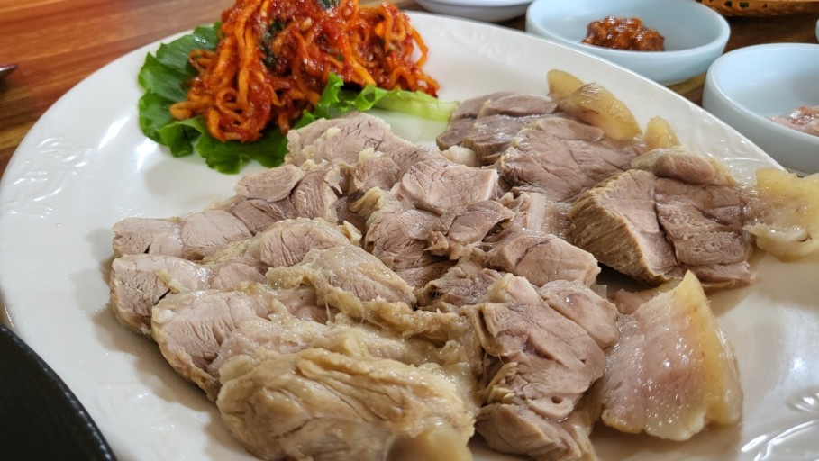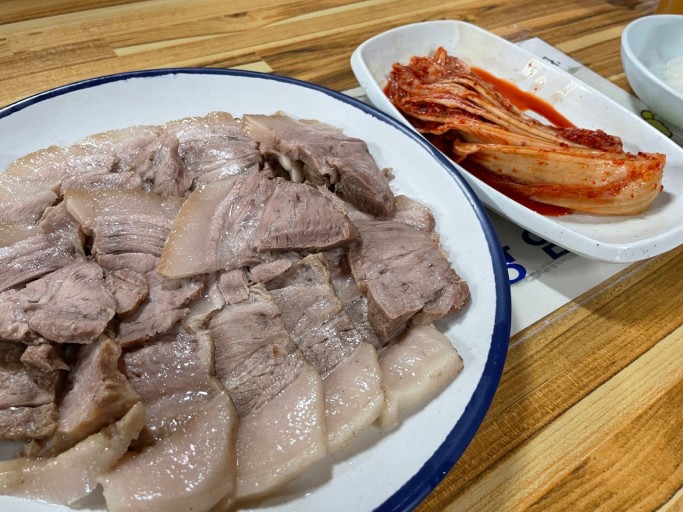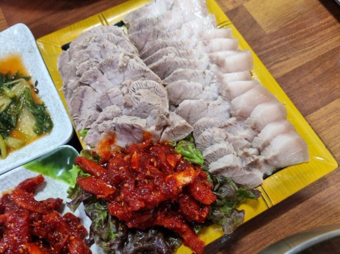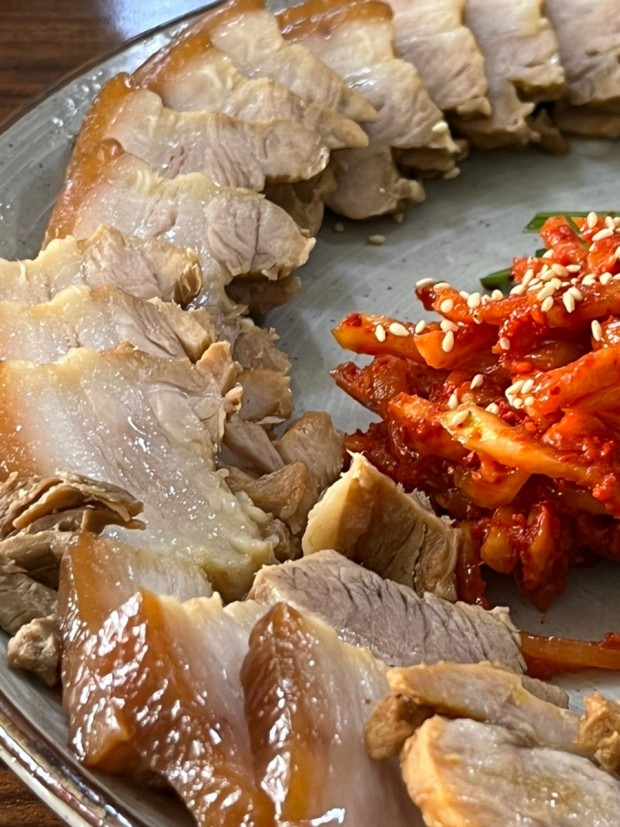 수육을 썰 때는 지그재그로 썰어 결을 살리면 더욱 맛있습니다.