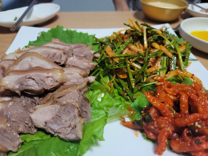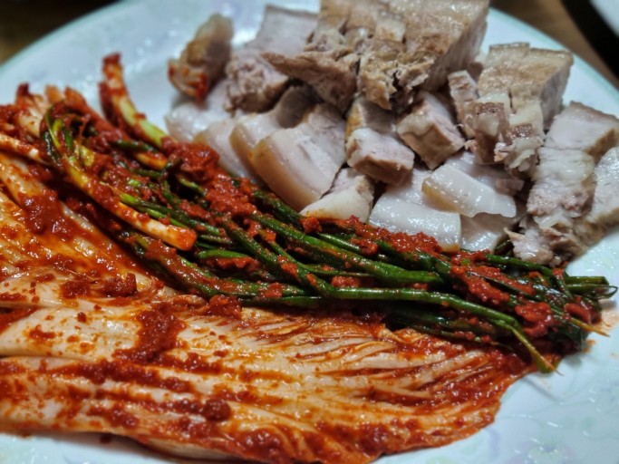 쫀득쫀득하고 부드러운 고기 한 점에 새우젓 한 숟가락—