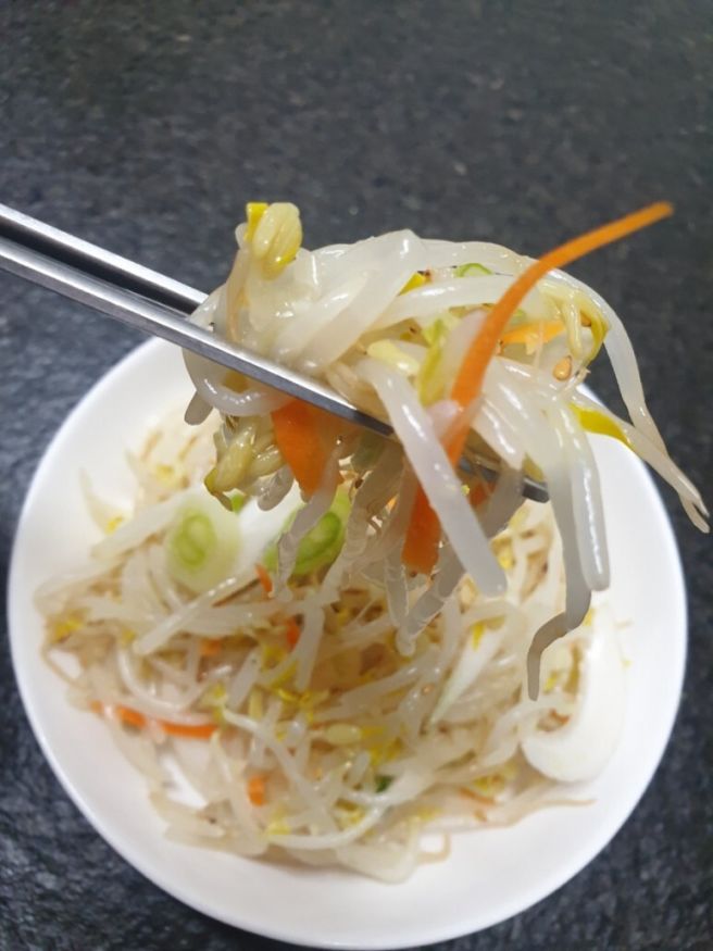 - 숙주나물을 흐르는 물에 3-4번 씻은 후 물기를 제거합니다.