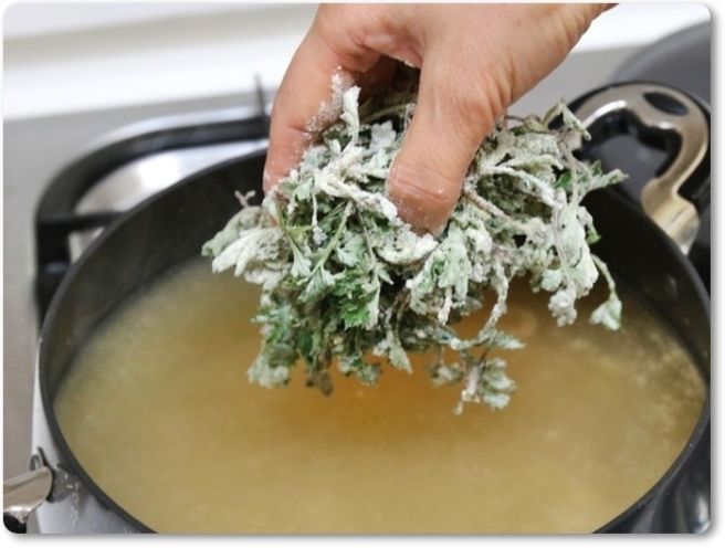 - 쑥의 향이 잘 올라오도록 뚜껑을 덮지 않고 끓입니다