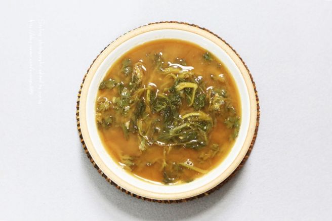 - 육수에 데친 쑥을 넣고, 된장, 국간장, 멸치액젓을 넣어 간을 맞춥니다.