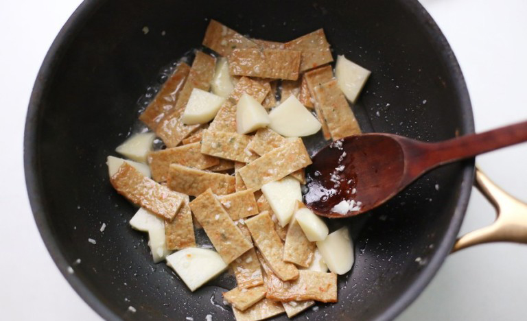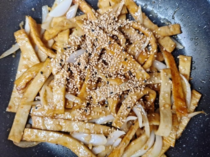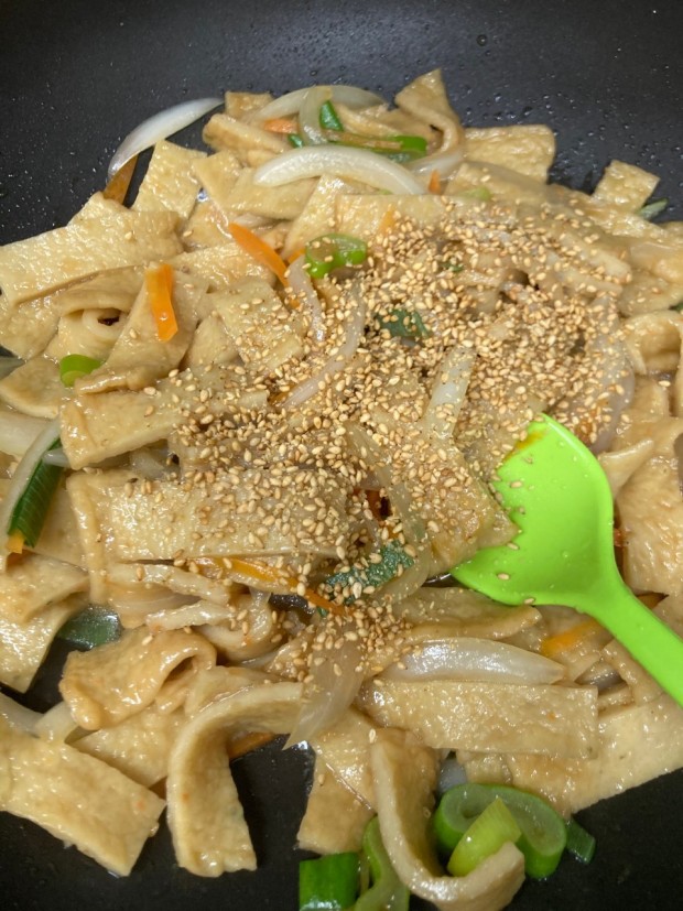- 어묵의 수분을 날려 바짝 볶으면 식감과 풍미가 더 좋습니다.