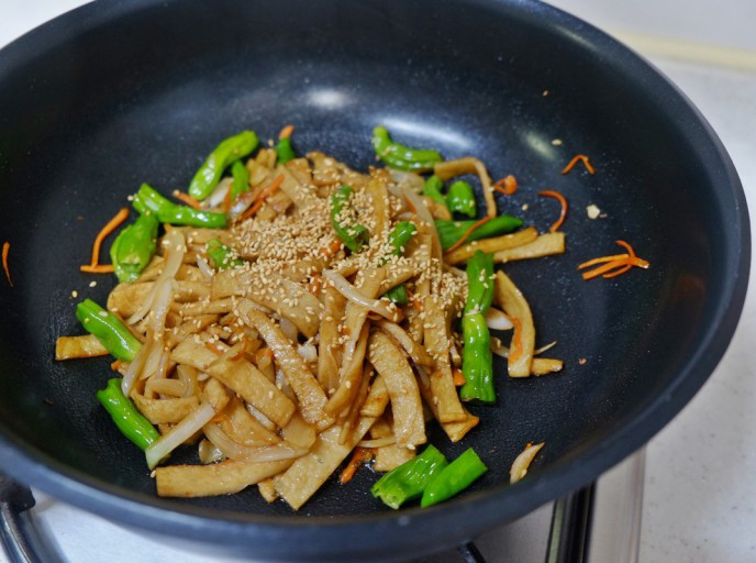 - 마지막에 참기름과 통깨를 뿌려 마무리합니다.