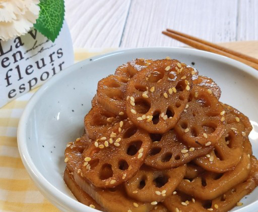 - 완성된 연근조림은 사각사각하고 단짠한 맛으로 인기가 많습니다!