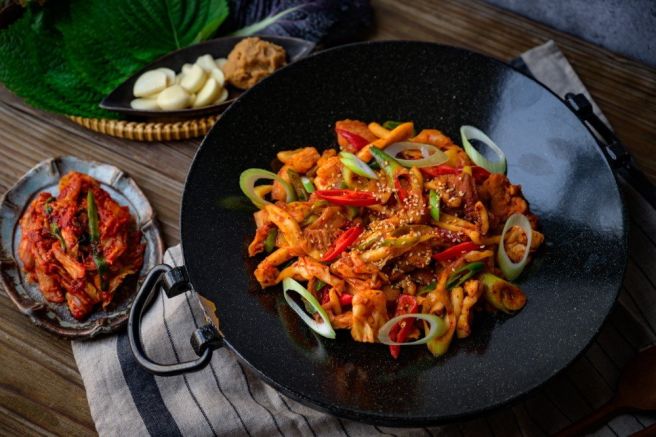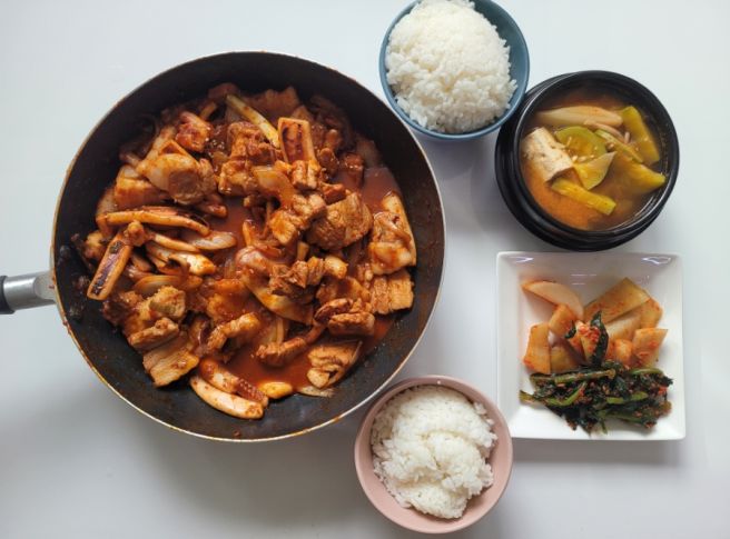 오삼불고기 황금레시피 아이들이 어느 정도 크니까, 이제 이러한 매콤한 것도 먹을 수 있어서 진짜로 좋습니다. 담백하게 먹거나, 매운 것과 안 매운 것 두 가지로 만들어야 했거든요. 온 가족 모여 앉아 봄 동에 잔뜩 올려 한 입 가득 먹으니 여기가 바로 천국인데요.