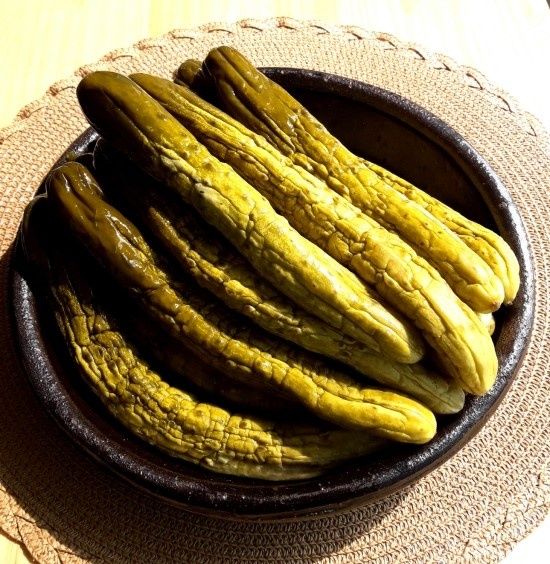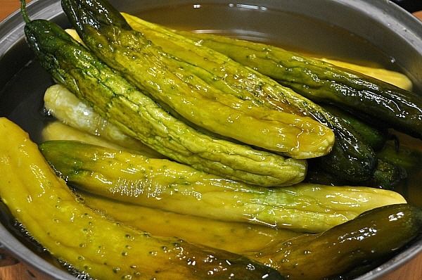 오이지 물없이담그는방법 - 간혹 색이 아직 초록초록한 것이 있는데 그건 오이가 제대로 물에 잠기지 않아서인데 누름돌로 꾹 눌러 두면 예쁘게 잘 절여져요