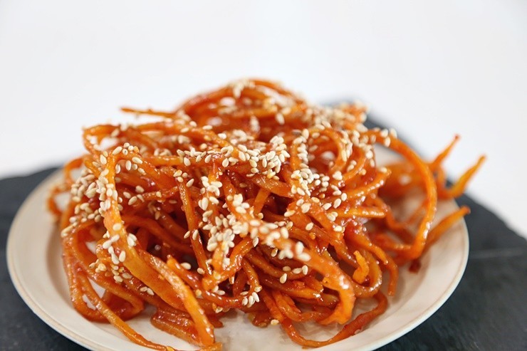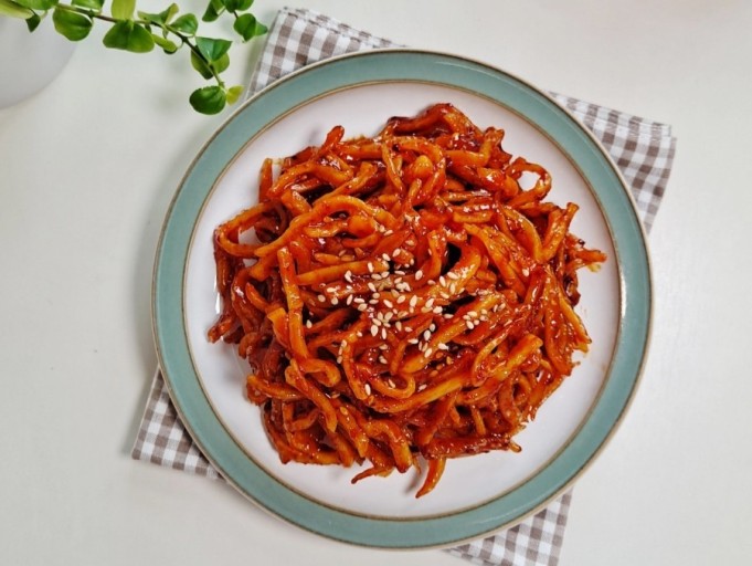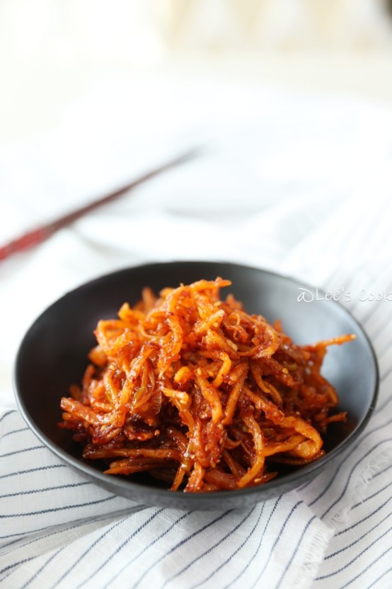 - 양념에 물을 조금 넣으면 오징어채가 타지 않고 잘 스며들게 됩니다.