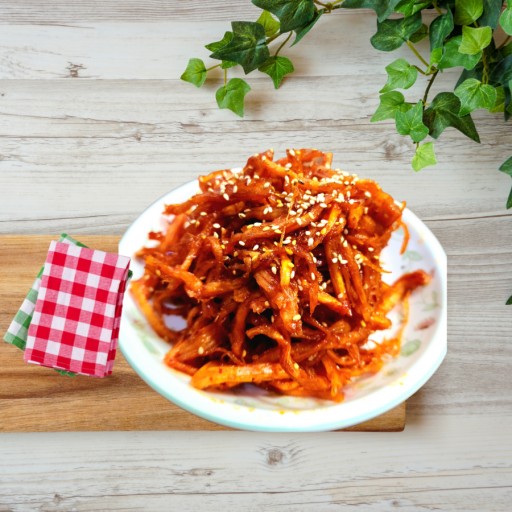 이렇게 만든 오징어채볶음은 부드럽고 고소한 맛을 자랑하며, 다양한 요리와 잘 어울립니다.