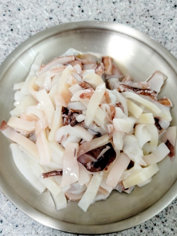 - 오징어는 적당한 크기로 썰어 준비합니다.