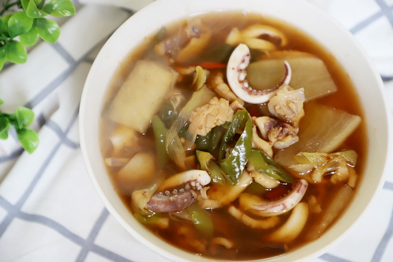 - 오징어는 오래 끓이면 질겨지므로 마지막에 넣어 짧게 조리합니다