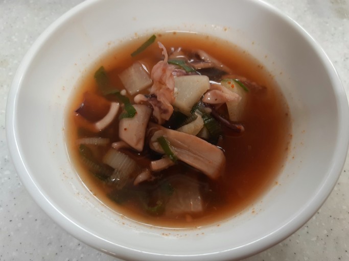 - 오징어는 오래 끓이면 질겨지므로 마지막에 넣어 짧게 조리합니다.