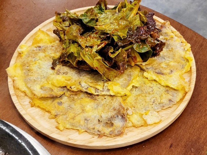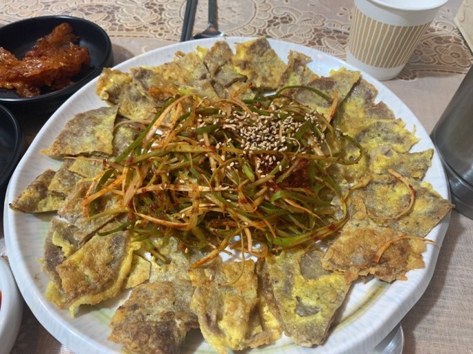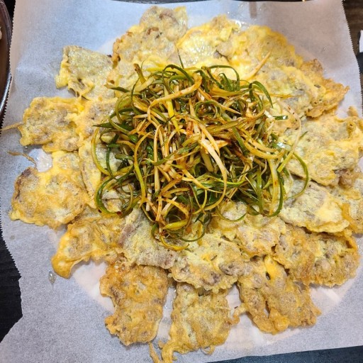 - 또 기호에 따라 고추 고명을 올려도 좋으며 전은 나중에 간장소스나 부추 무침, 또는 파 무침과 함께 먹으면 더 맛있으기 때문에 굳이 계란물에 소금 간을 하지 않아도 크게 상관은 없다.