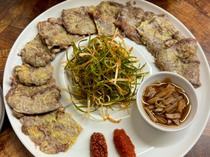 육전은 얇게 썬 소고기를 부침가루와 계란물로 코팅한 후 노릇하게 구운 한국 요리입니다. 맛있는 육전을 만들기 위한 핵심 포인트는 다음과 같습니다: