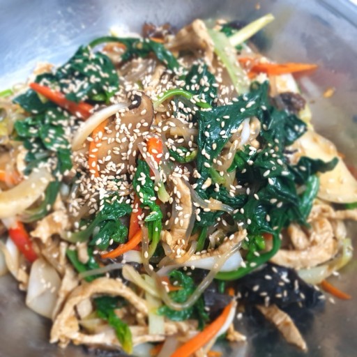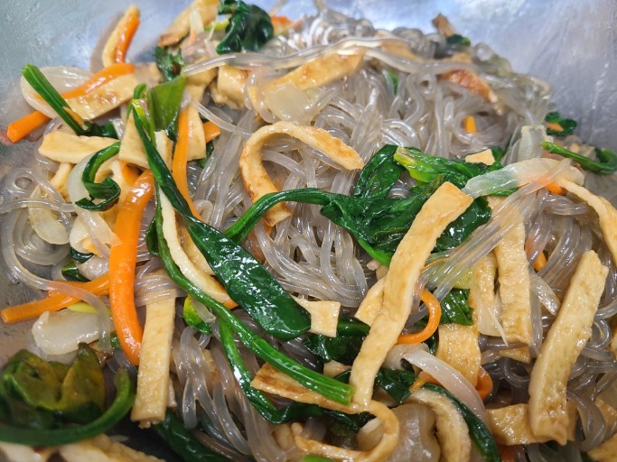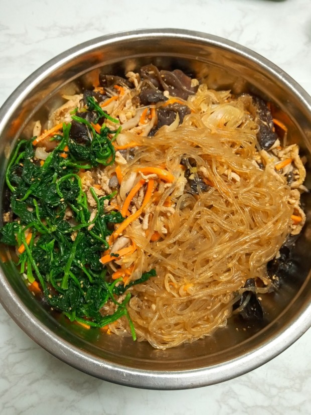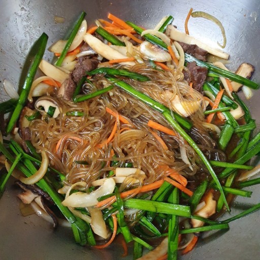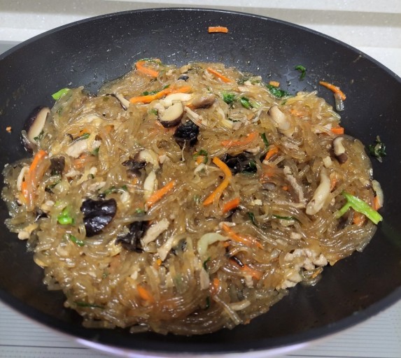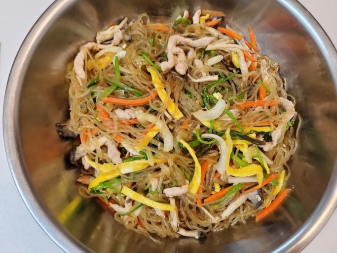 - 모든 재료가 잘 섞이면 맛있는 잡채가 완성됩니다!