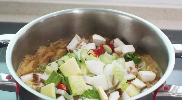 - 무가 어느 정도 익으면 청국장을 넣기 전까지 중불에서 끓여줍니다.