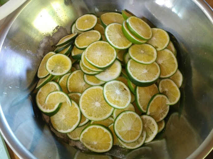 청귤은 껍질을 그대로 썰어 넣어 만드는 방식이기 때문에 껍질을 제대로 세척해 주어야 한다. 그렇지 않으면 쓴맛이 나고, 자칫 농약이나 좋지 못한 성분들이 제대로 씻겨나가지 않아 함께 청을 만들어 몸속까지 들어갈 수 있기 때문이다. 청귤을 한 박스나 한 바구니 정도 구입한 수 따뜻한 물에 베이킹 소다를 충분히 풀어 둔 다음 청귤을 담가 놓는다. 보통 30분 정도 담가 두면 깨끗해지지만 청귤 개수나 정도에 따라 오버해도 무방한다.